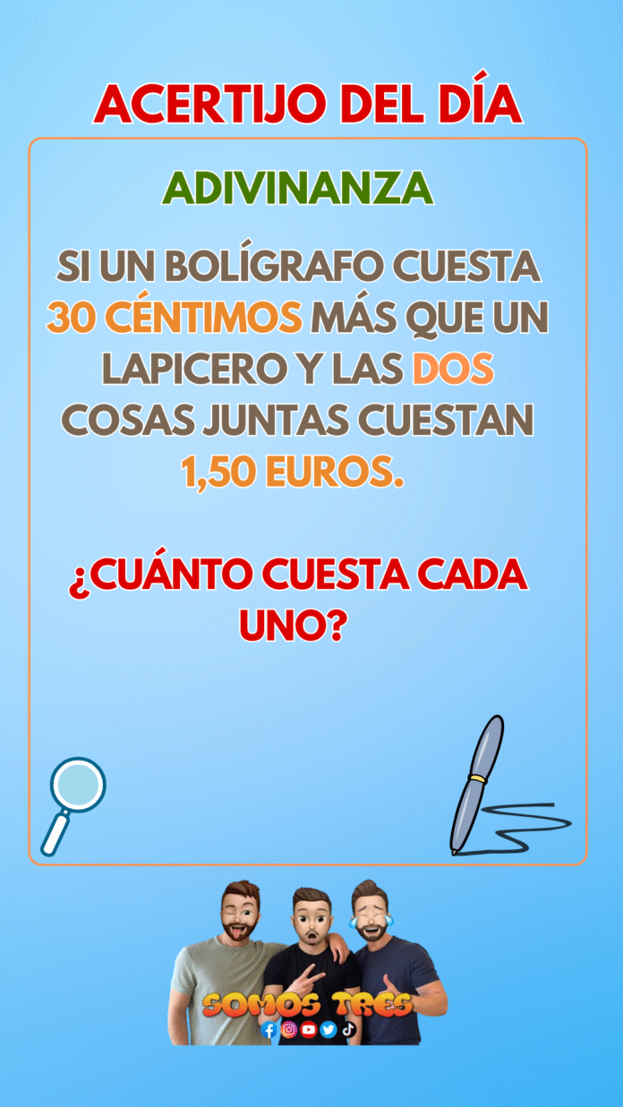 ✅ Respuesta final: el lapicero cuesta 60 céntimos y el bolígrafo 90 céntimos.