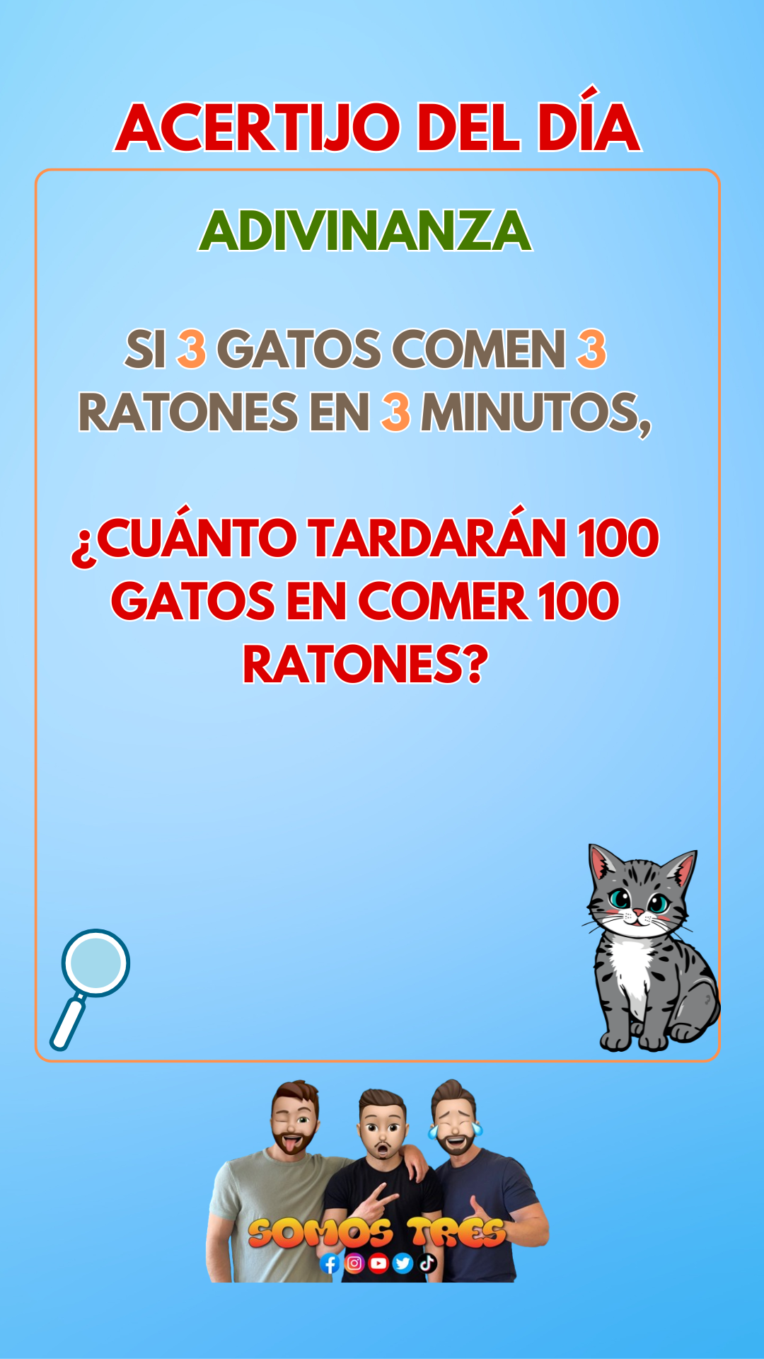 👉 Por eso, 100 gatos tardan 3 minutos en comer 100 ratones.