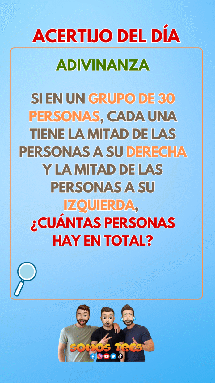 La persona del centro (la número 16) tiene 15 a la izquierda y 15 a la derecha, es decir, la mitad y la mitad.