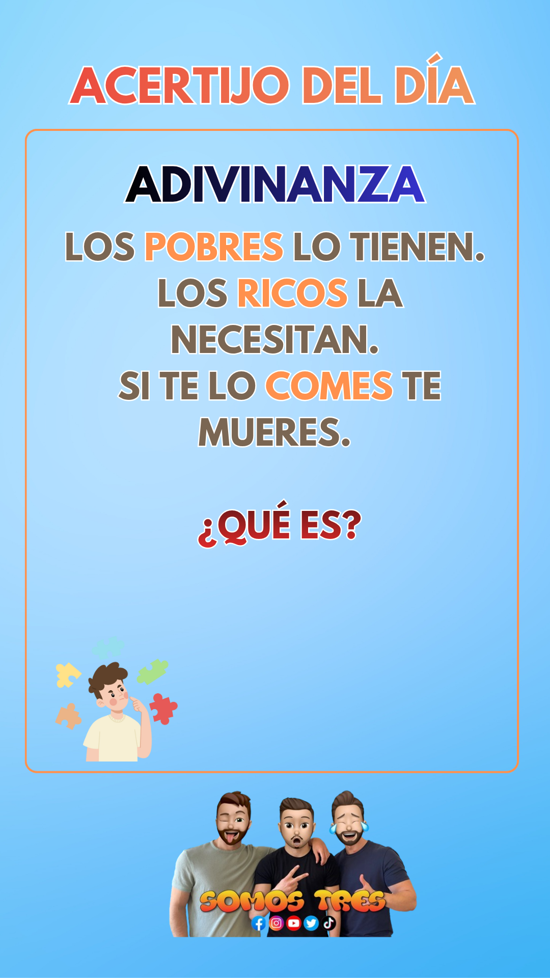 InicioSin categoríaACERTIJO DEL DIA Sin categoría ACERTIJO DEL DIA By Somos Tres 19 de noviembre de 2025 0 47 Cuota FacebookWhatsAppTwitterPinterest Respuesta: Nada. Cuota FacebookWhatsAppTwitterPinterest Artículo anterior¿Qué tanque se vacía primero?Artículo siguienteACERTIJO DEL DIA Somos Treshttps://somostres.tv RELATED ARTICLES Sin categoría ACERTIJO DEL DIA 21 de noviembre de 2025 Sin categoría ¿Qué tanque se vacía primero? 13 de noviembre de 2025 Sin categoría ACERTIJO DEL DIA 13 de noviembre de 2025 - Advertisment - LO MÁS VISTO ACERTIJO DEL DIA 21 de noviembre de 2025 ¿Qué tanque se vacía primero? 13 de noviembre de 2025 ACERTIJO DEL DIA 13 de noviembre de 2025 Escribe una palabra que lleve SOLAMENTE tres «A» 12 de noviembre de 2025 Cargar más