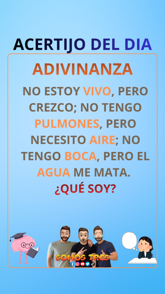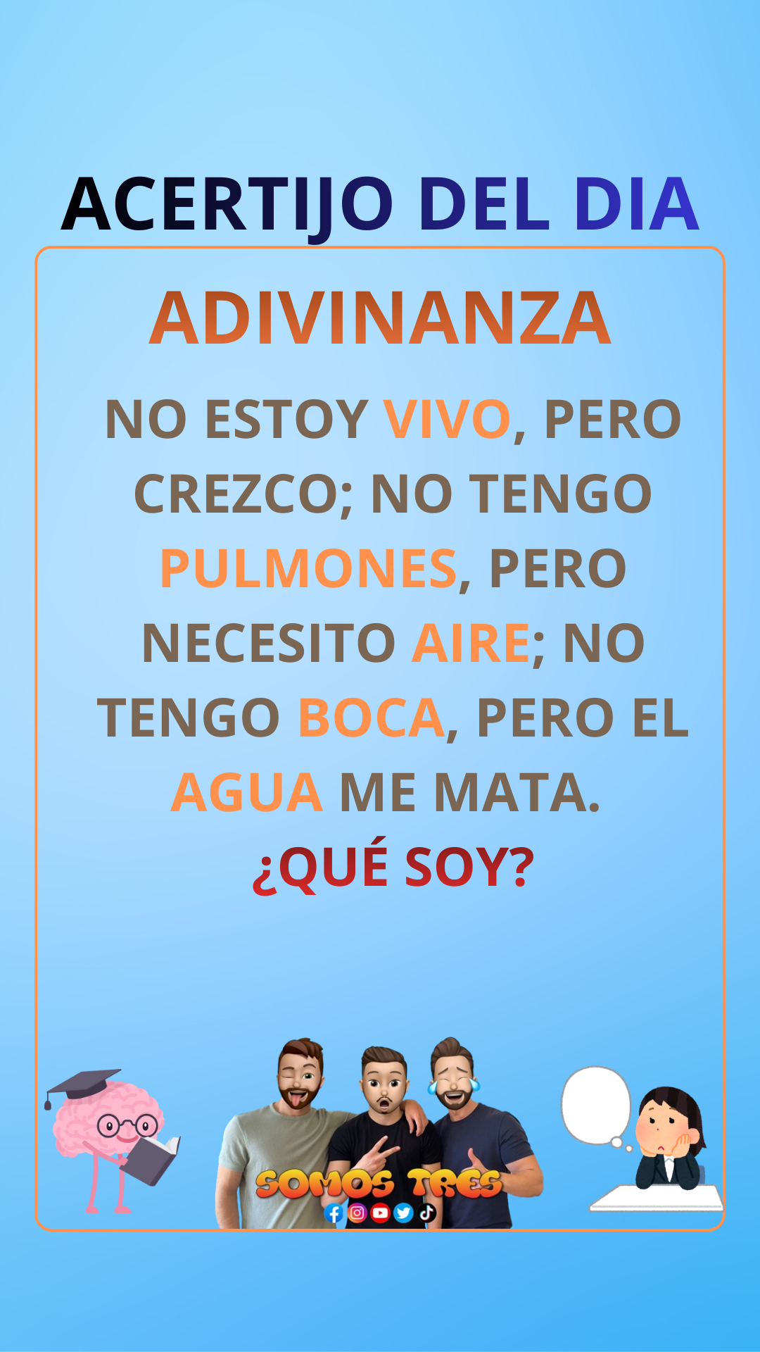 InicioSin categoríaACERTIJO DEL DIA Sin categoría ACERTIJO DEL DIA By Somos Tres 9 de enero de 2026 0 46 Cuota FacebookWhatsAppTwitterPinterest Respuesta: El fuego Cuota FacebookWhatsAppTwitterPinterest Artículo anteriorACERTIJO DEL DIA Somos Treshttps://somostres.tv RELATED ARTICLES Sin categoría ACERTIJO DEL DIA 7 de enero de 2026 Sin categoría ACERTIJO DEL DIA 5 de enero de 2026 Sin categoría ACERTIJO DEL DIA 3 de enero de 2026 - Advertisment - LO MÁS VISTO ACERTIJO DEL DIA 7 de enero de 2026 ACERTIJO DEL DIA 5 de enero de 2026 ACERTIJO DEL DIA 3 de enero de 2026 ACERTIJO DEL DIA 2 de enero de 2026 Cargar más