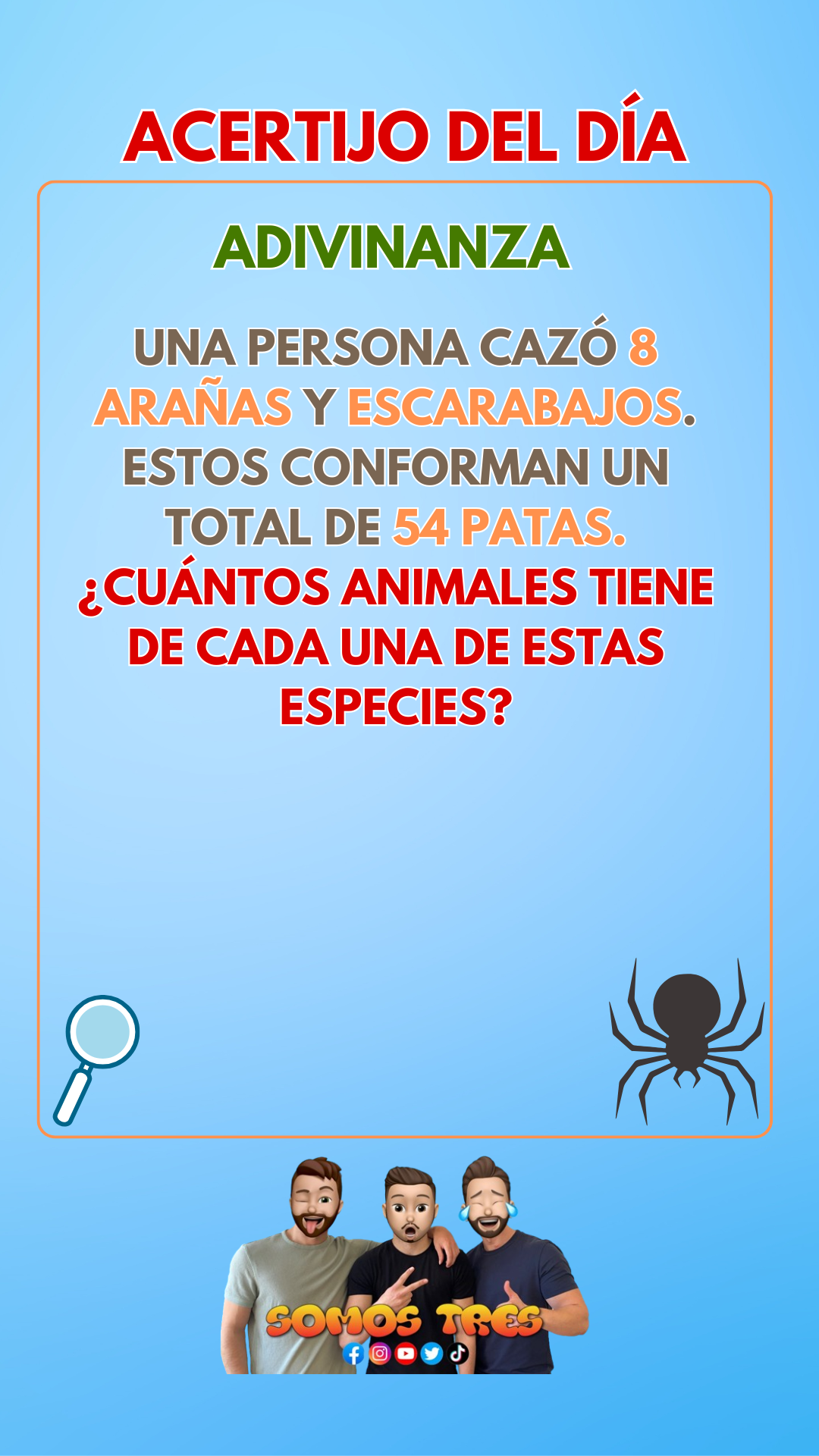 así que para sumar esas 6 patas hacen falta 3 arañas.