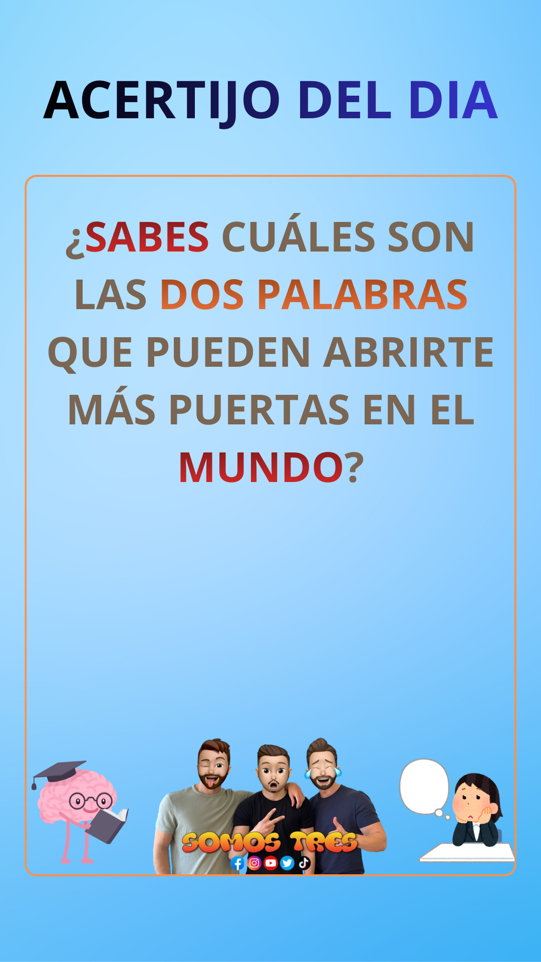 InicioSin categoríaACERTIJO DEL DIA Sin categoría ACERTIJO DEL DIA By Somos Tres 21 de enero de 2026 0 155 Cuota FacebookWhatsAppTwitterPinterest Respuesta: Tire y empuje. Cuota FacebookWhatsAppTwitterPinterest Artículo anteriorACERTIJO DEL DIAArtículo siguienteACERTIJO DEL DIA Somos Treshttps://somostres.tv RELATED ARTICLES Sin categoría ACERTIJO DEL DIA 13 de febrero de 2026 Sin categoría ACERTIJO DEL DIA 9 de febrero de 2026 Sin categoría ACERTIJO DEL DIA 5 de febrero de 2026 - Advertisment - LO MÁS VISTO ACERTIJO DEL DIA 13 de febrero de 2026 ACERTIJO DEL DIA 9 de febrero de 2026 ACERTIJO DEL DIA 5 de febrero de 2026 ACERTIJO DEL DIA 3 de febrero de 2026 Cargar más