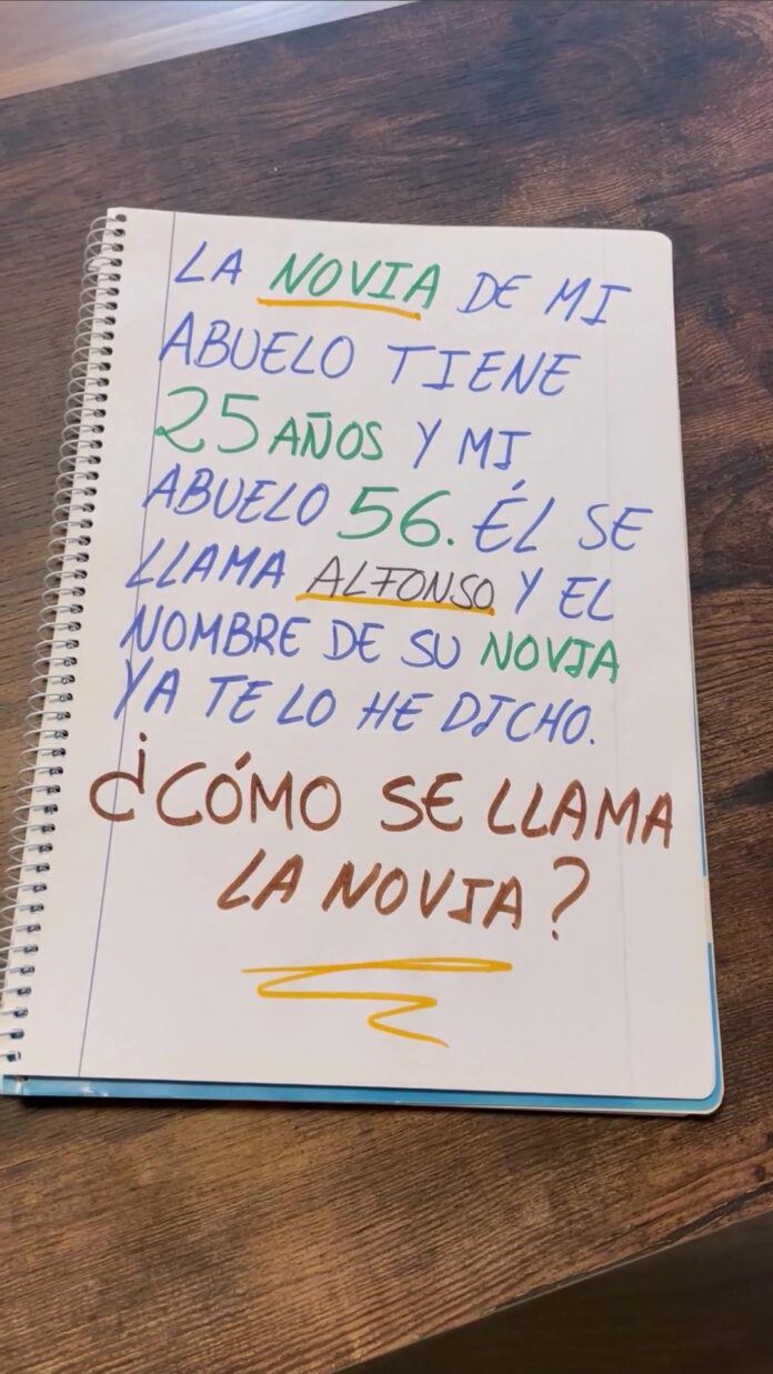 La novia de mi abuelo tiene 25 años y mi abuelo 56. Él se llama Alfonso y el nombre de su novia ya te lo he dicho.